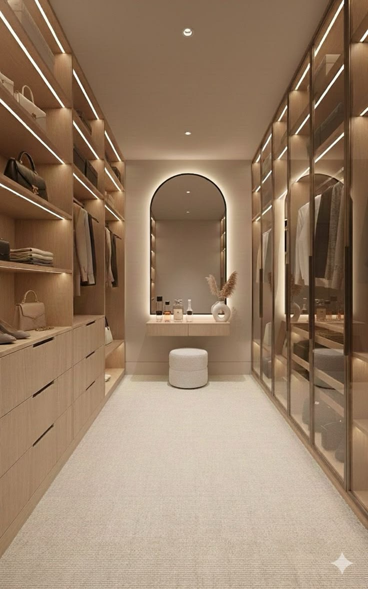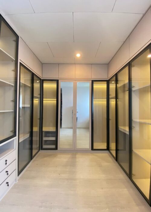 Ruang penyimpanan pakaian yang rapi, elegan, dan memudahkan aktivitas sehari-hari.